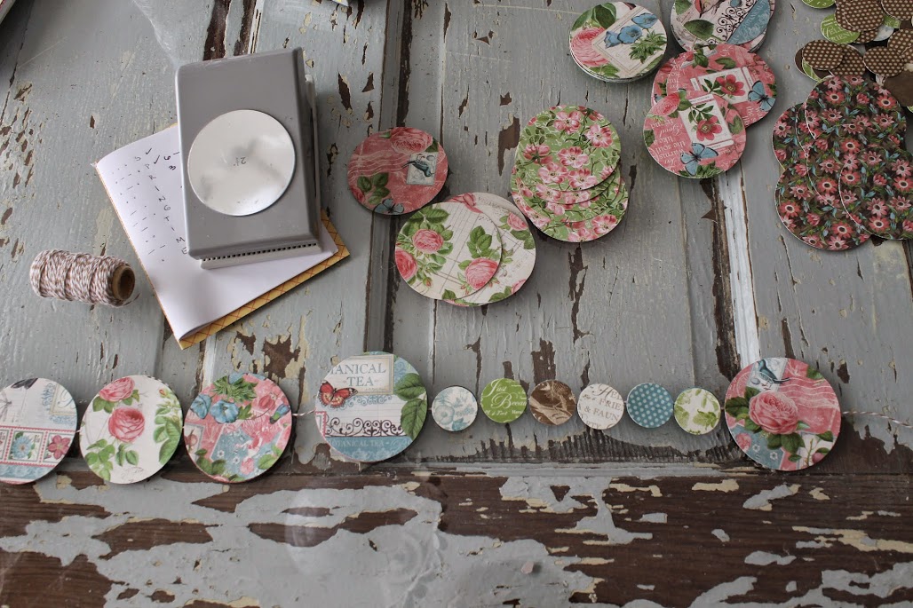 The other day I was pondering how to make a random circle garland. I always inadvertently make patterns, but I thought a random garland would be visually interesting. And after a few mental zigzags I hit upon the idea of making a garland in Morse code.